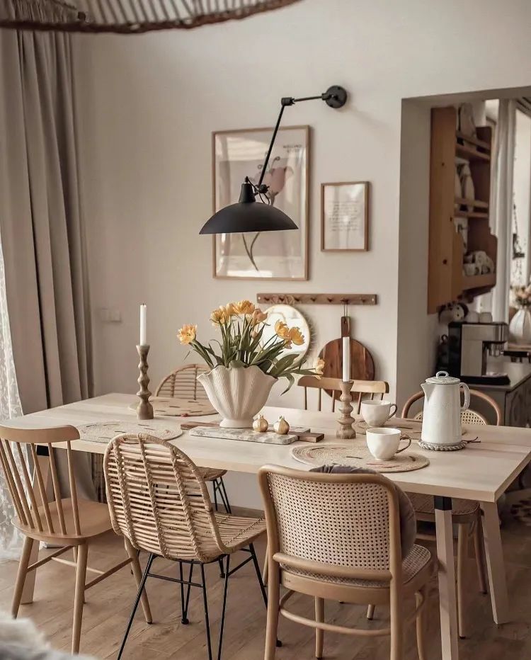 打造北欧风格的家居空间,其实并不复杂。只要掌握以下几个要点,你就能轻松打造一个充满北欧风情的家居空间:北欧风格倡导的是简洁与自然,因此在颜色的选择上,我们可以选择白色、灰色、米色这类的中性色,这些颜色能够营造出宽敞明亮的空间感。墙面和家具的色调应保持一致,以维持整体的和谐统一。而点缀色则可以更加大胆和生动,如红色、橙色、黄色、绿色等,它们犹如画龙点睛之笔,为家居空间注入活力与趣味。但点缀色彩的使用不宜过多,以免破坏整体的简洁与平衡。选择线条流畅、造型简约的家具,如沙发、床、餐桌等,是北欧风格的核心。这些家具设计简洁,没有多余的装饰,能够更好地体现出空间的宽敞与明亮。同时,选择优质木材制作的家具,如橡木、白蜡木等,能够为家居增添一份自然与温馨的气息。这些木材的颜色和质感能够与北欧风格的自然色调相得益彰,营造出一种舒适而宁静的氛围。